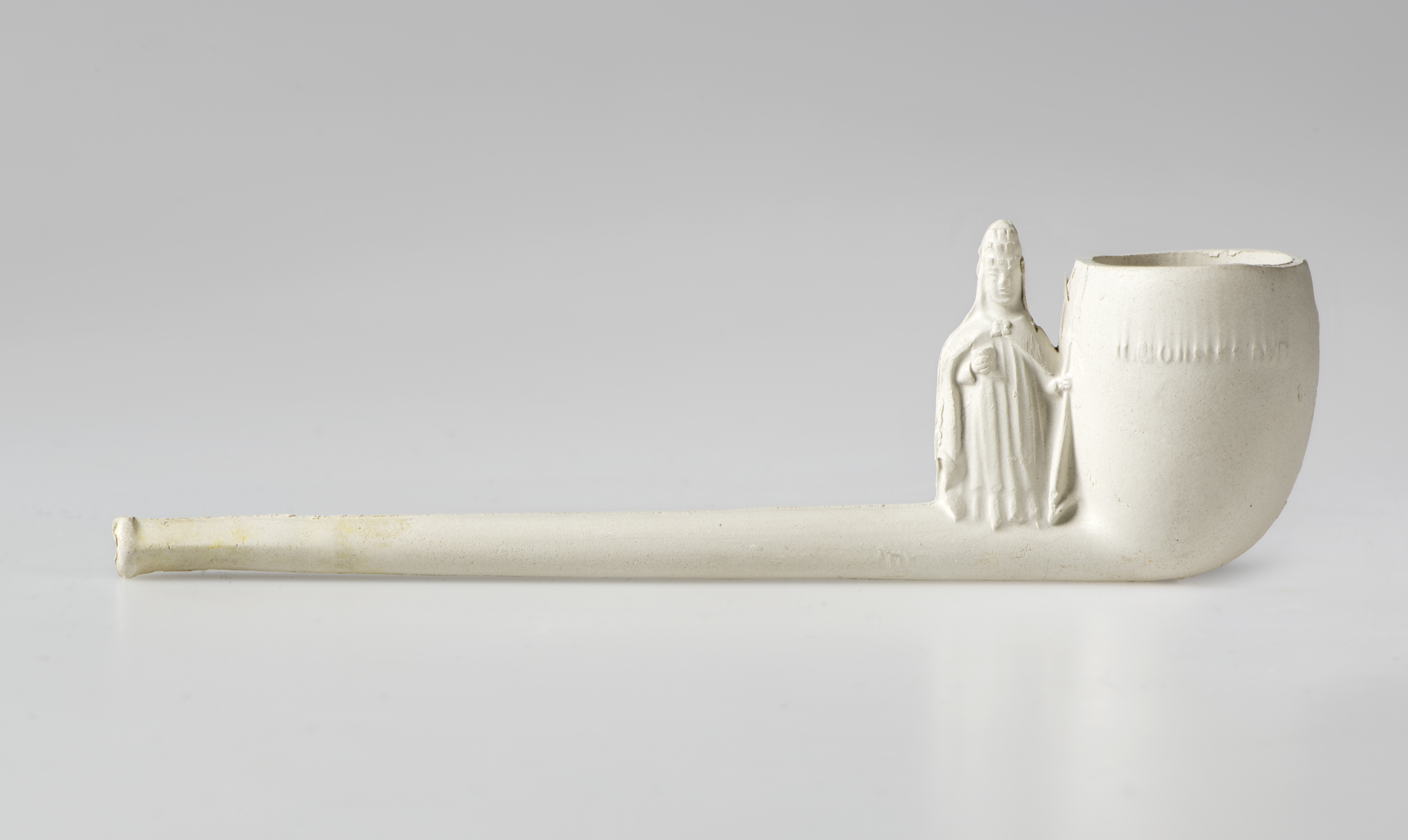 Vollständige Tonpfeife desselben Typs (Vorderseite). Foto: Marcel Zanjani/LVR-Amt für Bodendenkmalpflege im Rheinland