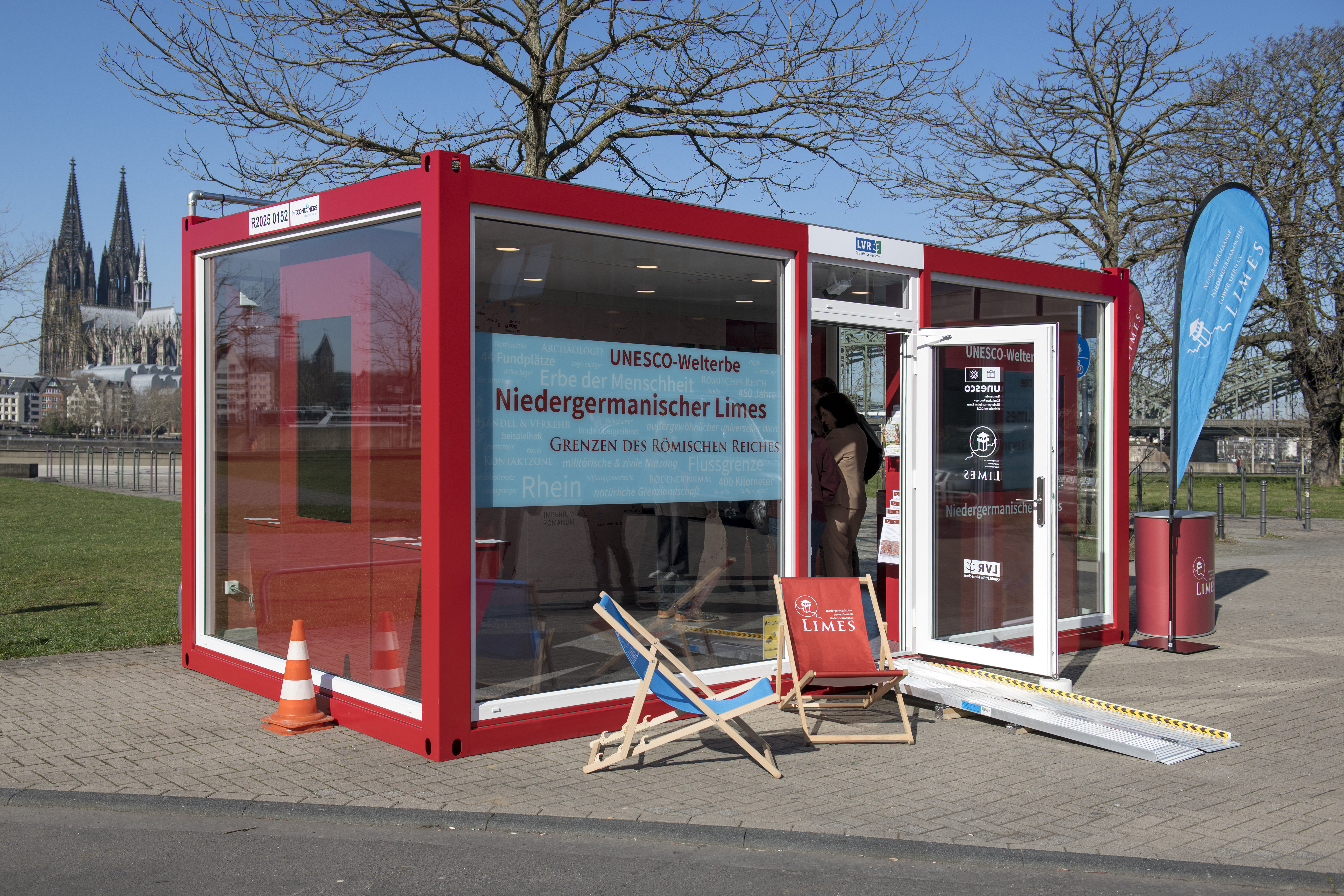 Das Informationszentrum ist tagsüber für alle Interessierten geöffnet und kann bis 29. März 2026 am Deutzer Rheinufer auf Höhe des Landeshauses besucht werden. Die Öffnungszeiten sind Montag bis Freitag von 11 bis 15 Uhr, am Wochenende von 12 bis 16 Uhr.